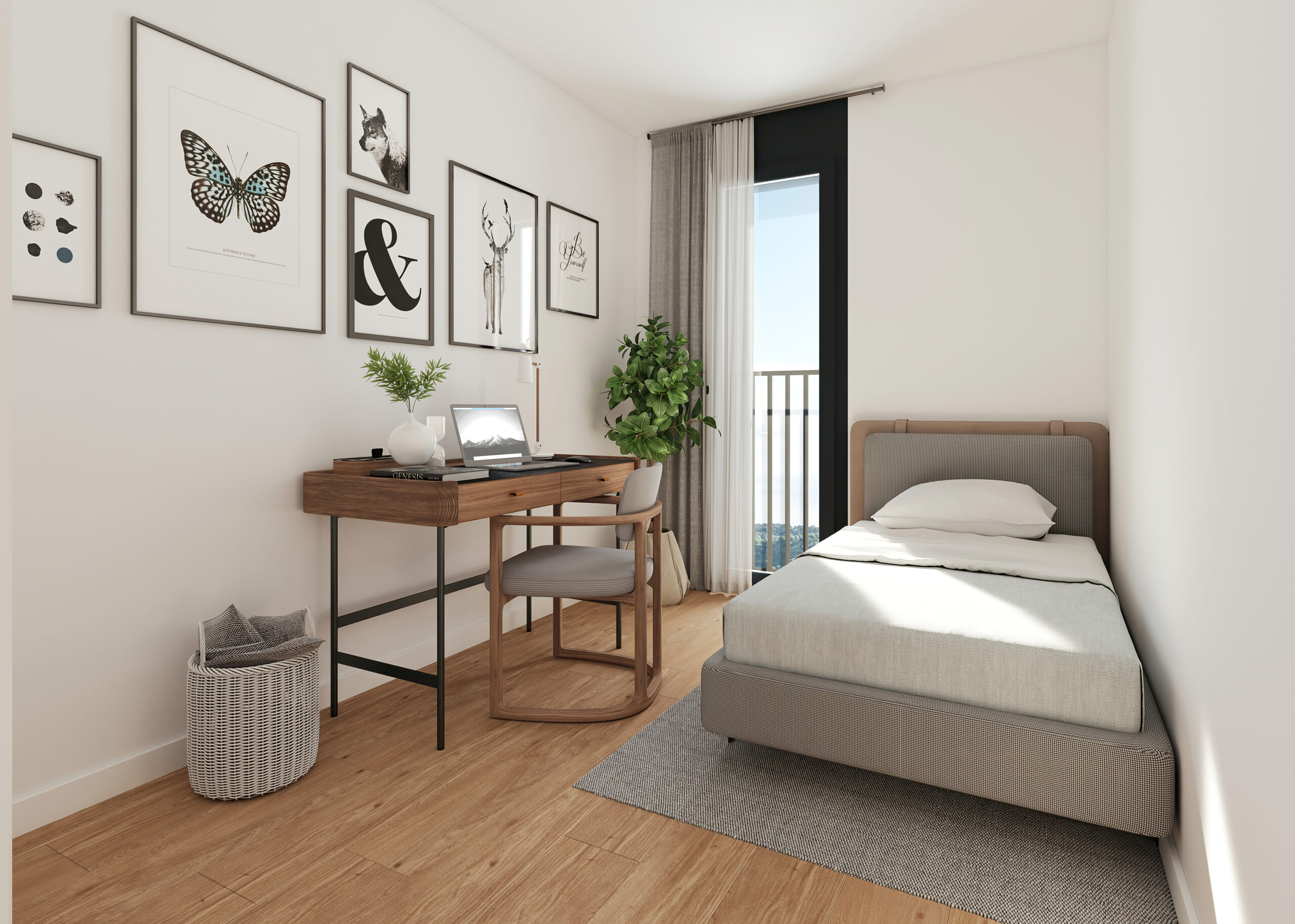 Viviendas de 1, 2, 3 y 4 dormitorios, de 57m² a 107 m² con amplias terrazas desde 13m² hasta 86m² para los áticos.